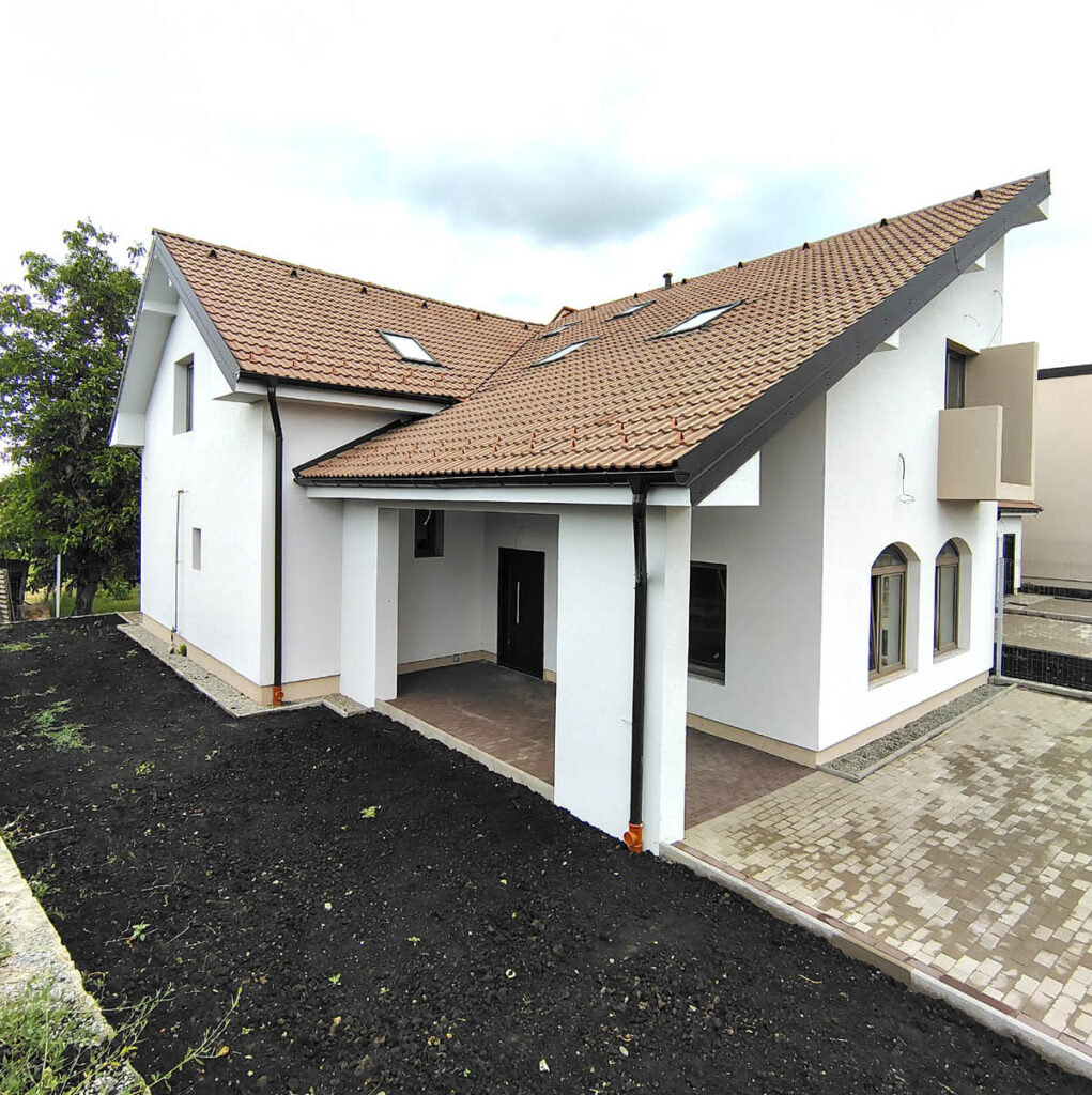 - fațade cu tencuială decorativă, acoperiș cu țiglă ceramică, scări din beton, terasă acoperită pavata, contoare individuale montate la limita de proprietate (apometru, electric, gaz)